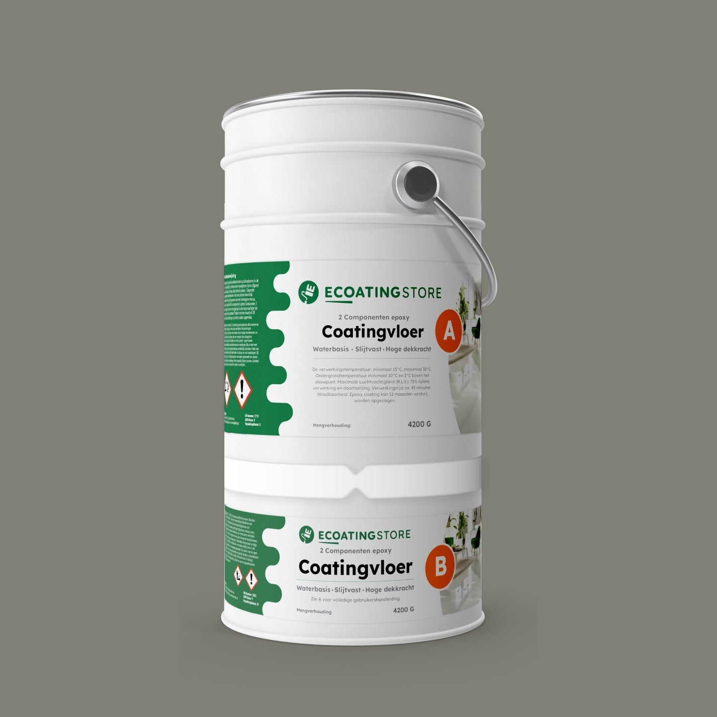 Onze Vloercoating - RAL 7023 transformeert gewone oppervlakken in hoogwaardige, duurzame meesterwerken dankzij de geavanceerde 2-componenten epoxy formule. Diverse toepassingen profiteren van optimale bescherming en verfraaiing, zoals vloeren, werkbladen, kunstwerken en industriële projecten. Deze coating biedt een innovatieve combinatie van functionaliteit en esthetiek voor uitstekende duurzaamheid en weerstand tegen chemicaliën. Het creëert een naadloze, sterke barrière die dagelijkse slijtage, krassen, chemicaliën en vlekken voorkomt, waardoor oppervlakken er jarenlang als nieuw uitzien.
